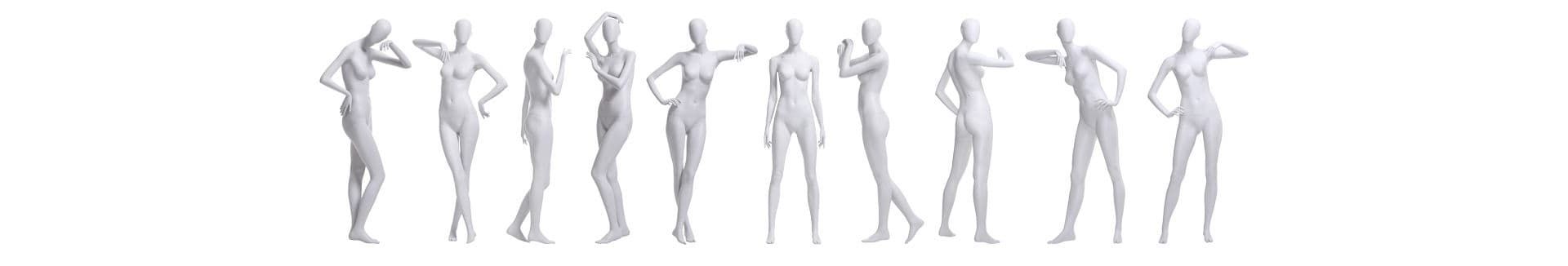 Two fabulous collections to liven up your store displays. The new trendy multi-model Girls ’n’ Boys bands, made with WINDOW FRANCE’S DNA FACTORY technology. Matching busts and leg forms are available to give your stores the ‘complete’ look. Just girls, just boys or mixed line-ups, these 2 collections are great for any type of clothing stores from haute couture to sportswear. Available in both abstract and egghead form for the males and abstract, egghead and realistic form for the females. The realistic female versions are equipped with the CAMELEON CONCEPT faces, with removable eyes and lips to give you thousands of choices to personalize or update your mannequins. Female versions have a choice of flat or heel feet.