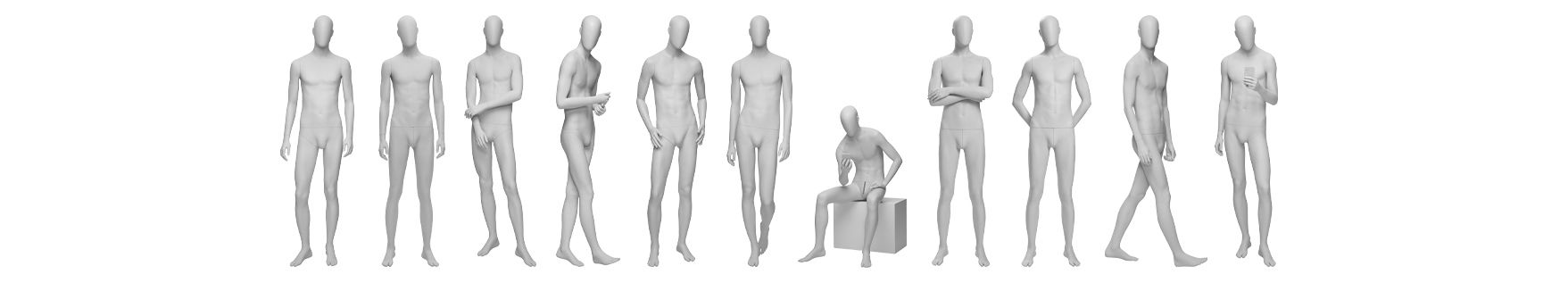 Citizens is made up of 19 female positions and 12 male positions and a wide range of heads with different faces and hair - styles. The collection has the advantage of having a new magnetic removable head system to be able to mix and match positions with the ethnic heads of your choice. A wide range of heads is available, and each head with different hairstyles.