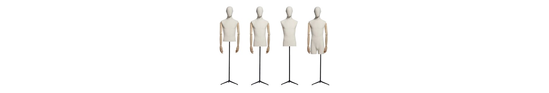 COLLECTION 89. ABSOLUTE VINTAGE - BUSTS CONTEMPORARY VINTAGE ! The collection 89 VOGUE VINTAGE is a selected pose from the Vogue collection with wooden articulated arms. The collection is available either with fabric covered busts and heads or with painted busts and heads. These beautifully finished mannequins are an interesting fusion of contemporary styling and traditional vintage materials. They come in matt white, off-white cotton canvas and arms are made of beech wood. They match up with the female collection of busts. The busts have removable heads and can be used headless with painted or fabric neck covers.