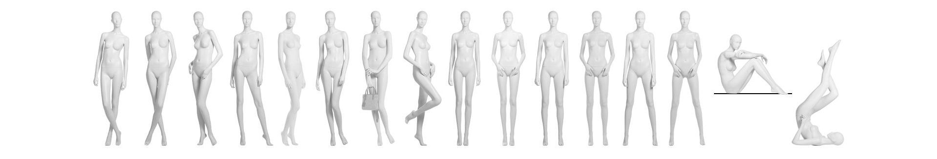 The collection 83 ABSOLUTE is a fixed head mannequin that comes in 2 DIFFERENT STYLES - ABSTRACT and EGGHEAD. The collection is made up of 5 dynamic and assertive positions. This collection represents the young contemporary man of today. The collection is available in many finishes from painted surfaces to transparent resins.