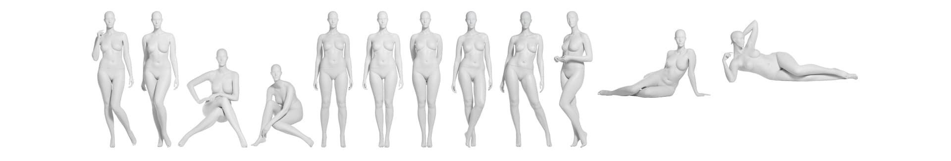 The collection 92 VOLUPTUOUS marks a new generation in plus size mannequins. Voluptuous curves with hoards of feminine charm. A year of studies and creative research has given birth to beautiful natural poses, making it today the worlds ‘most extensive plus size collection. The collection has been carefully designed to make the plus size women of today proud of their generous proportions and their femininity. Positions have been developed for ready to wear, jeans and lingerie.